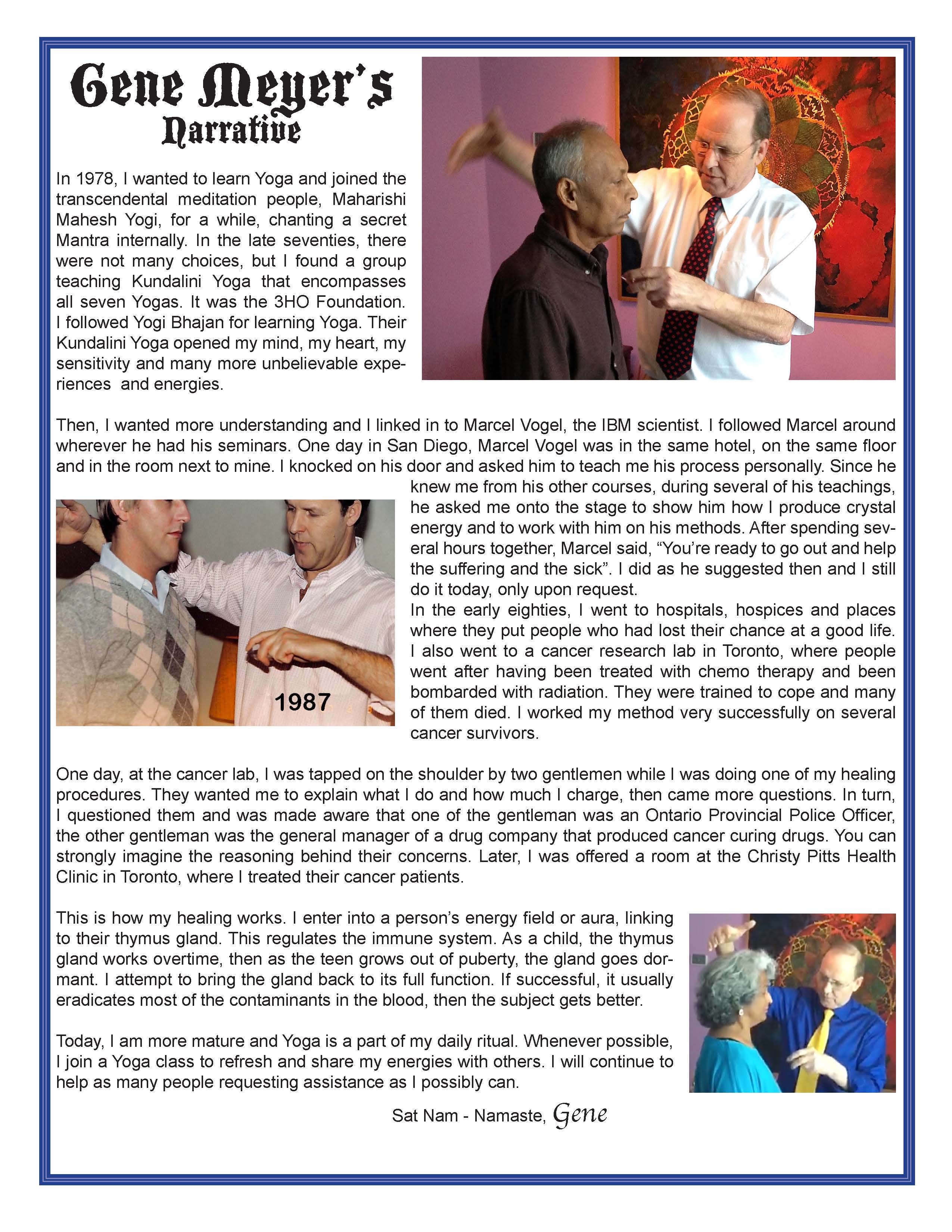 teaches Marcel Vogel's 'crystal release' technique, as part of the IEL Program
