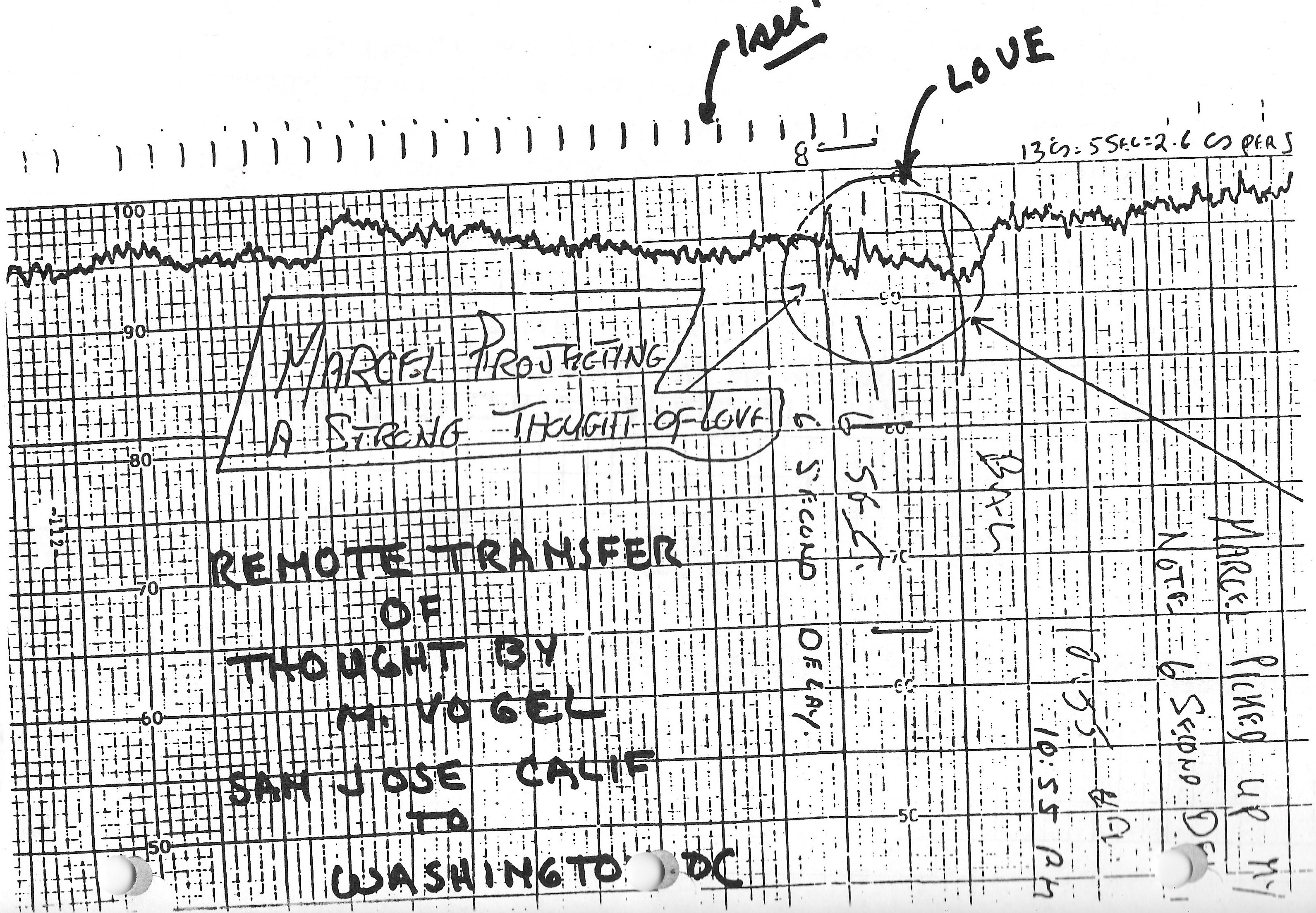 On the above graph, Marcel successfully transferred a thought from San Jose, CA to Washington DC. He also did this from Prague, Czechoslovakia to San Jose, CA. Basically, Marcel found that plants respond more to the thought of being cut, burned, or torn than to the actual act. He discovered that if he tore a leaf from one plant a second plant would respond, but only if he was paying attention to it. The plants seemed to be mirroring his own mental responses. He concluded that the plants were acting like batteries, storing the energy of his thoughts and intentions. He said of these experiments: I learned that there is energy connected with thought. Thought can be pulsed and the energy connected with it becomes coherent and has a laser-like power.1 Marcel discovered that the greatest cohering agent is love. This, of course, set him apart from his fellow scientists. At a time when many still don’t acknowledge that an observer affects what they are observing, the notion of love was a totally unscientific idea. Even when cloaked in the garb of a term like resonance it was unacceptable. To Marcel, love was (and is) a pure force. Certainly we experience it as an emotion, but this is our experience of something that is beyond emotion. He likened it to gravity, an attracting and cohering force present at every level of existence. Without this relationship an important aspect of scientific investigation is missing, preventing us from discovering and exploring the more, perhaps most, subtle aspects of life. This is one reason why certain scientific investigations in the area of subtle energies cannot be readily replicated. It is not always a matter of scientific protocol, but a matter of relationship. Unfortunately many scientists would consider this to be some kind of inessential and perhaps bothersome epiphenomena. Although such individuals are scientists, to Marcel, they were technicians attempting to prove what they already thought was true. The true scientist is one who attempts to discover with childlike curiosity. Too often we, all of us, only want to confirm what we already believe. The details of the work with plants can be found in the books The Secret Life of Plants by Peter Tompkins and Christopher Bird and Psychic Exploration: A Challenge to Science edited by Edgar Mitchell. During this time period, 1974, Marcel gave many lectures about his work with plants and at one of these presentations, at the First Church of Religious Science in Los Angeles, he was approached by Dr. McKistry who told him about quartz crystals that she had with her. Apparently these crystals had the peculiarity of vibrating when held in the hand. Marcels ambivalent response to this was So what? Although he too experienced the vibration of the crystals in his own hand, Marcel was unimpressed with them. Nonetheless he accepted her gift of a small quartz point. Just about this time, unfortunately, his plants would begin to die, suffering from over-stimulation. Perhaps the crystals were an answer to his prayer about another way to detect the energy of mind.