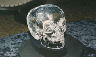 It is my belief that natural quartz skulls are information transfer devices. It has been my pleasure to work with the Mitchell-Hedges skull which is carved from a single quartz crystal, weighing 475 troy ounces and measuring 8.25 inches across the width of the skull. Working with Mrs. Hedges, the skull was held in my hands and brought in opposition to the solar plexus. Deep breathing exercises were then initiated and Mrs. Hedges, in looking at the skull, remarked that it had become luminous with light emanating from the eye sockets. When this took place, we both took a deep breath and entered the skull together with intention on the outgoing breath. We immediately felt a coolness, and a vibrating, oscillating motion took place in our bodies. By breath control this oscillation stopped, but when we let our breath out and relaxed, this oscillation came back. This was followed by a sound or tone being felt in the skull. A change in pitch was noted until a constant tone was felt. We then drew our breath in and focused our minds on knowing the intention of the functioning the these skulls. We let our breath out, and suddenly we saw a temple with a hole in the top. The skull sat on a pedestal directly under this hole. There was a priest with a shaved head, robed in white, wearing a medallion of gold inscribed with the image of the sun and its rays. The priest waited for the light of the sun to strike the skull, illuminating it in much the same way as in our experience. An older person with a shaved head came into the temple. The priest put his left hand on the head of the elderly man and his right hand on the crystal skull. He drew his breath in and pulsed the breath. The information in the mind of the older man was now transferred to the skull. He left and in his place came a young girl also dressed in white. The priest reversed his hands, placed his left hand on the skull and his right hand on the head of the young girl. He drew his breath in and pulsed his breath. That knowledge that was contained in the skull was now in the mind of the young person. This was repeated many, many times and suddenly the image faded. From this experience it was felt that these devices were information transfer systems. The transfer of patterns of thought stored in the brain could be utilized by a transfer mechanism of this type from one generation to another. This precluded the necessity of writing everything down and having to re-translate that written document back into the imagery that was required of the written word.