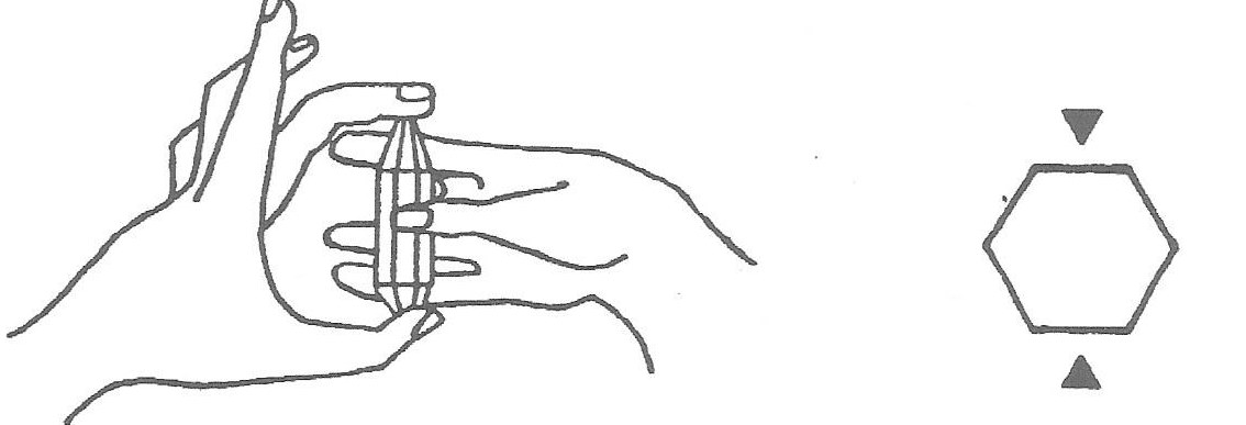 and index finger of non-dominant hand holds the crystal in the