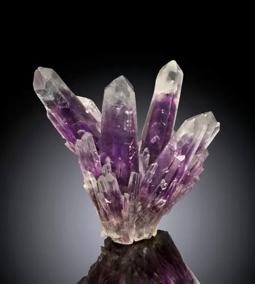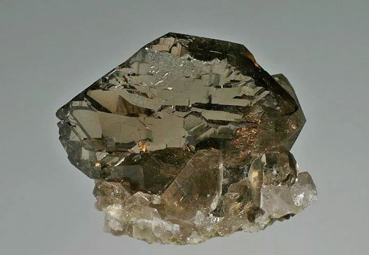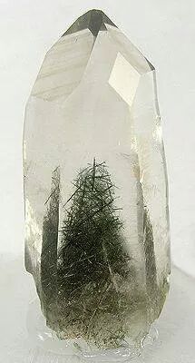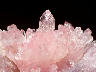 Quartz is grown, from solution, during cooling within the earth and is composed of a tetrahedral molecule, silicon and oxygen, to be silicon dioxide (SiO2). The ratio of elements is about 47% silicon and 53% oxygen. There are four oxygen atoms forming a tetrahedron with a single silicon atom in the middle. With a hardness of 7 on Moh's scale, quartz can scratch glass but glass is unable to scratch quartz. H2O and SiO2 molecules