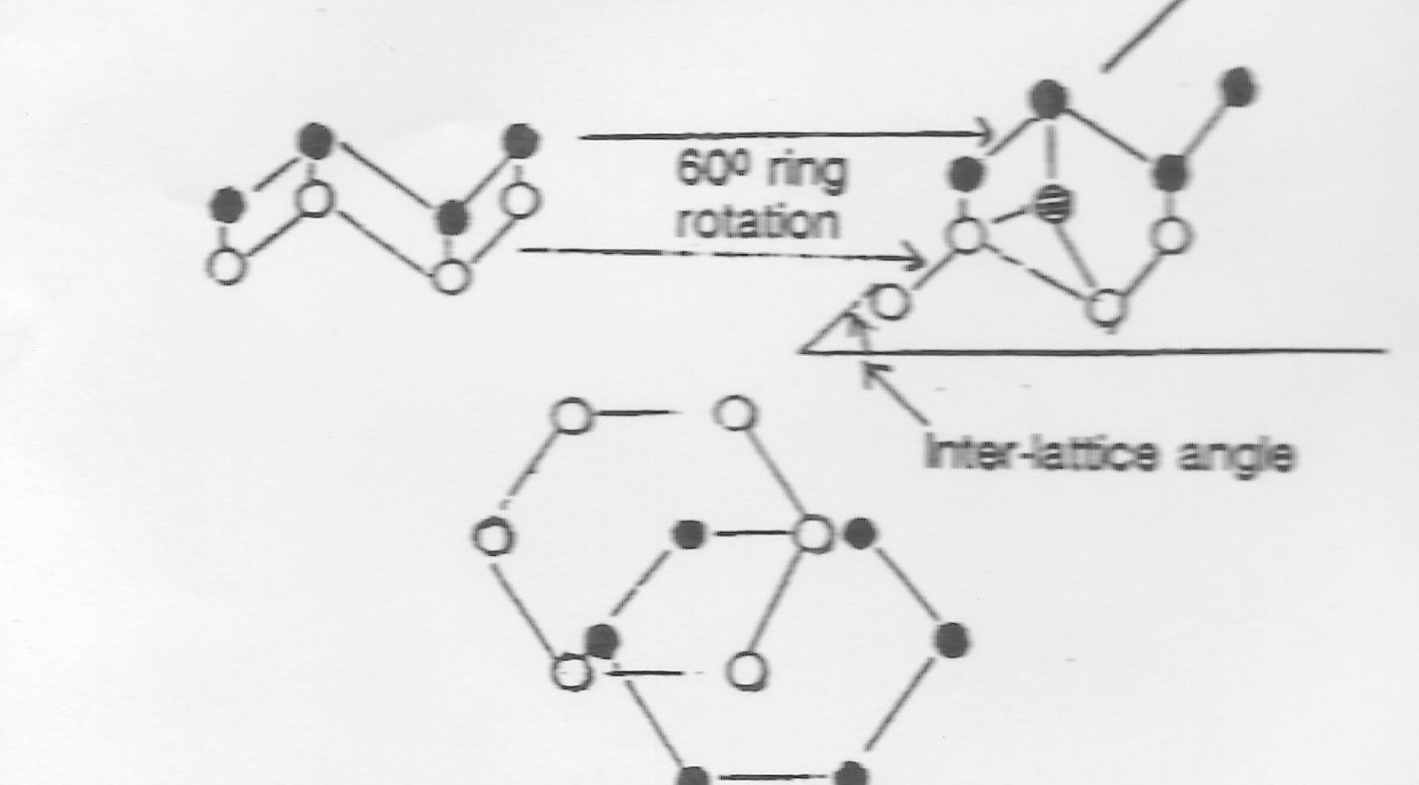 crystals such as increased birefringence and In the structured state water molecules have an angular, geometrical alignment. Quartz crystals also show this state but as a permanent solid state rather than a transitional semi-solid condition. If one compares the various angles of the quartz molecule and the water molecule, a possible basis for resonance between the two can be found.